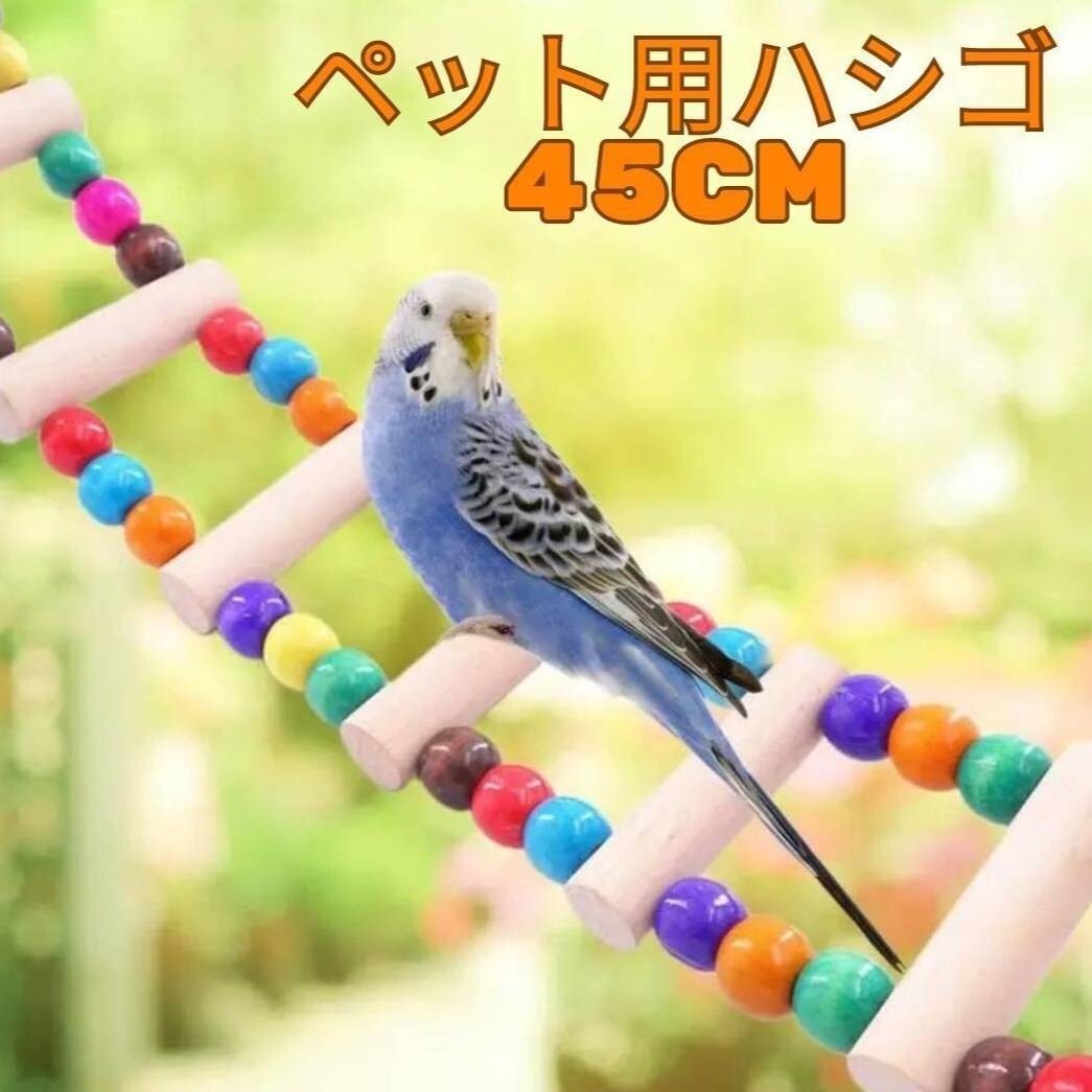 - 鳥用 止まり木 ハシゴ おもちゃ 木製 インコ オウム 8段 鳥グッズ カラフル かわいい