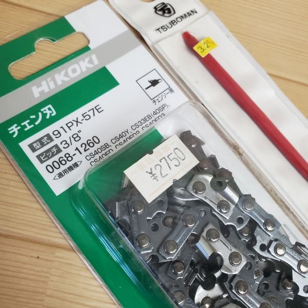 - 【アウトレット品】 HIKOKI チェン刃 91PX-57E 1点 ヤスリ付 チェンソー用 替刃 エンジンチェーンソー チェーンブレード sp-032-422