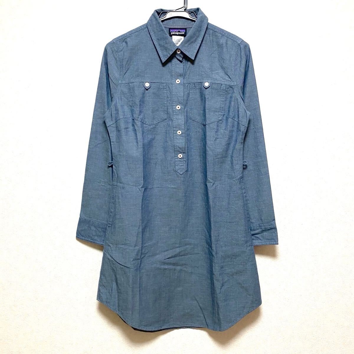 - 【人気】Patagonia パタゴニア 長袖 シャツ ワンピース ワンピ 2 レディース S 相当 デニム調 青 ブルー 夏 アウトドア シャツワンピース