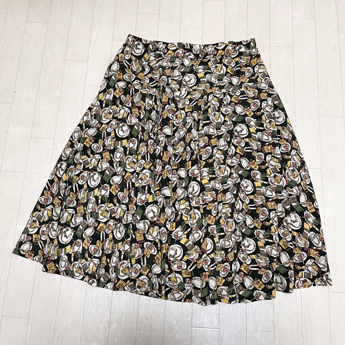> 和806★ Leilian レリアン フレアスカート ロング マキシ 総柄 13+ グレー ブラウン レディース パイプ タバコ 灰皿