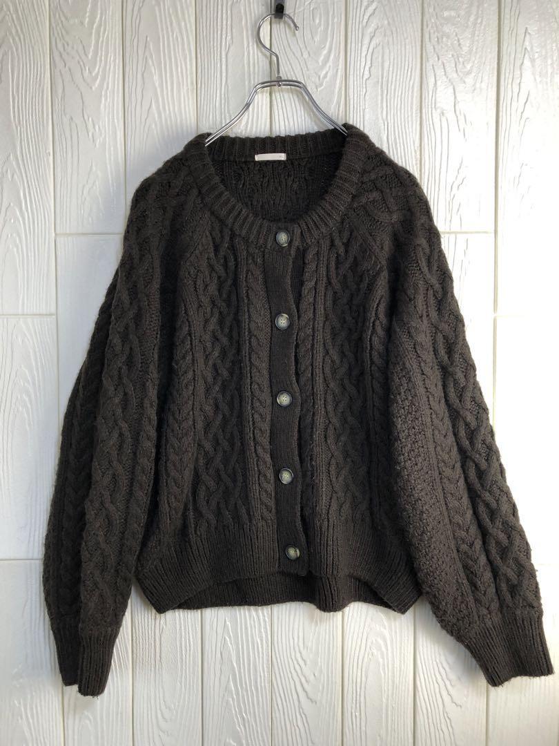 > GU ダークブラウン ケーブルニットカーディガン ミドルゲージ XLサイズ