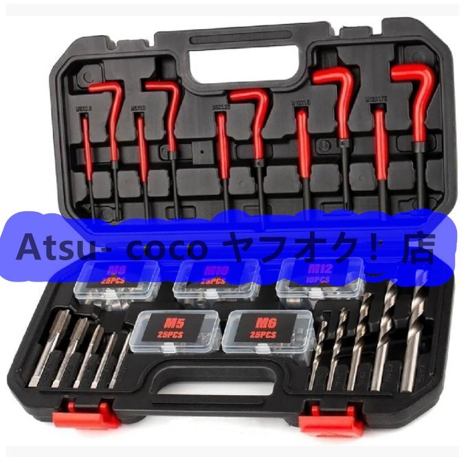 - ネジ穴 再生 セット リコイル ヘリサートキット 修正 修復 補修 キット スレッド修理キット M5 M6 M8 M10 M12 131pcs