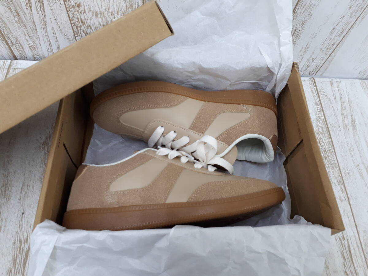 - 靴Hf3090-192♪【80】Vivian ビビアン ローテク異素材レースアップスニーカー ベージュ 39 サイズ要確認