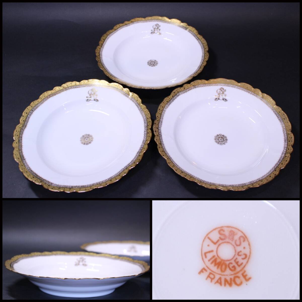 - w-6861 LIMOGES LS&S リモージュ 金彩 プレート 3点
