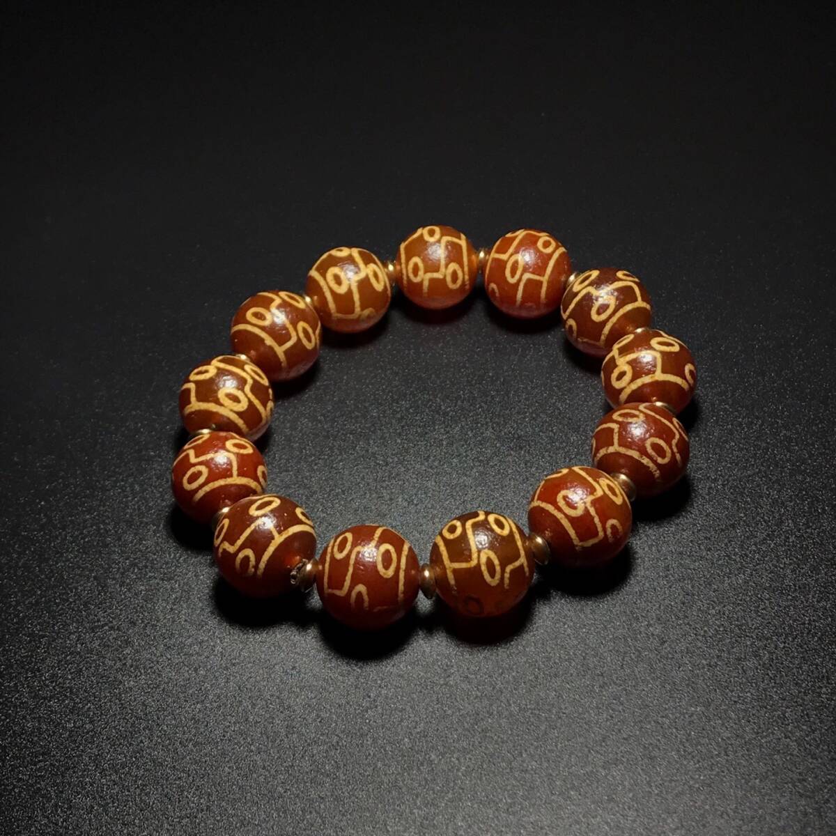 - 蔵友旧蔵出 瑪瑙製 細密彫 紅肉 折線九眼達洛天珠手串 高油包漿 根付裝身具 希少珍品 貴重品 置物 古賞物 中国古玩 中国古美術品
