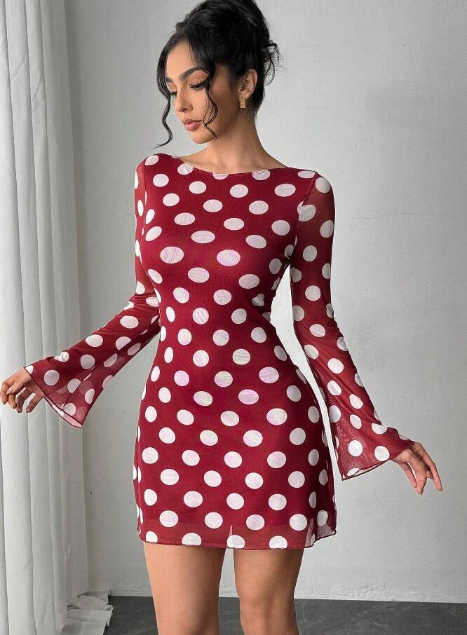 - M0731 ワンピースレディース● 20代30代40代 着心地抜群 ●大活躍 sexy 水玉 red