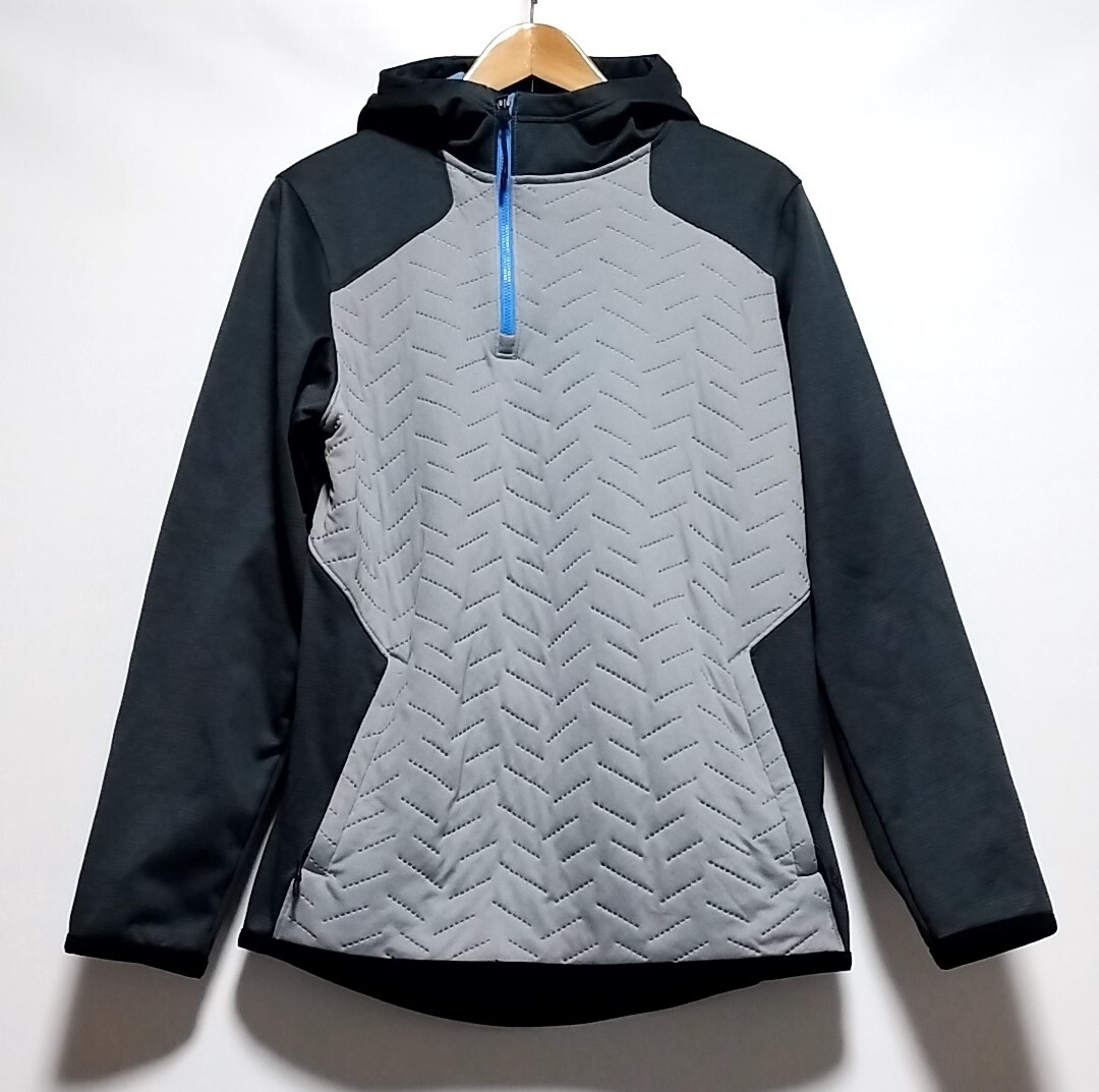 > 美品 アンダーアーマー 秋冬/裏起毛 コールドギア ストレッチパーカー ブルゾン フーディ ハーフジップジャケット グレー メンズM