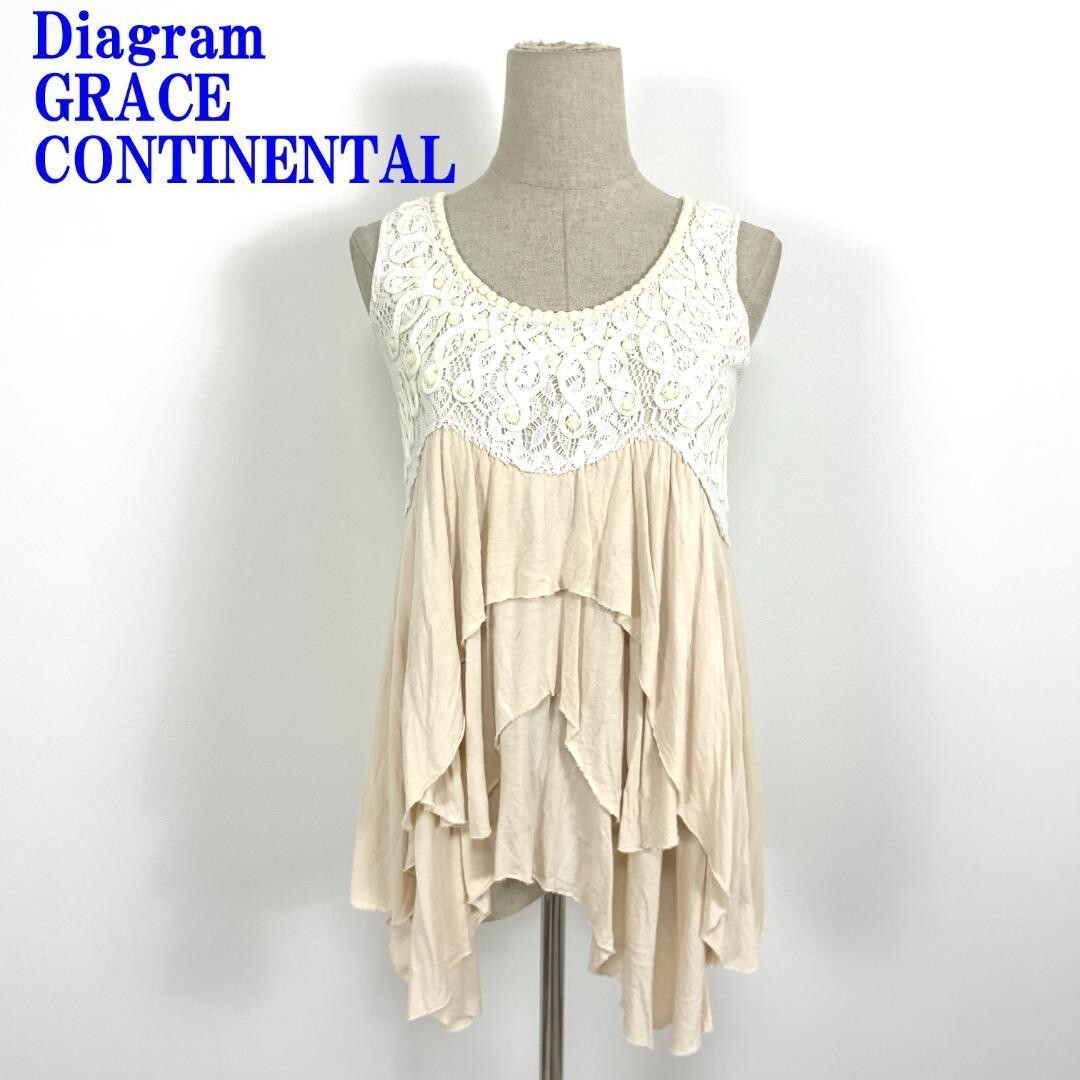 - ダイアグラム グレースコンチネンタル Diagram GRACE CONTINENTAL ビーズ刺繍 レース レーヨン100%ノースリーブカットソー 36 C3344