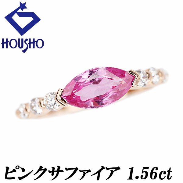 - ピンクサファイア リング ダイヤモンド K18ピンクゴールド 送料無料 中古 宝正 900890