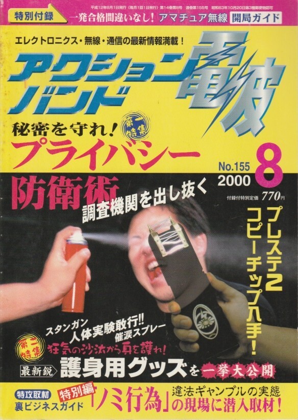 - アクションバンド 2000年08月号/リージョン外し/プライバシー防衛術/PS2コピーチップ/護身グッズ/TM-D700/IC-R3ss/DJ-X2/MVT-7300/AR5000