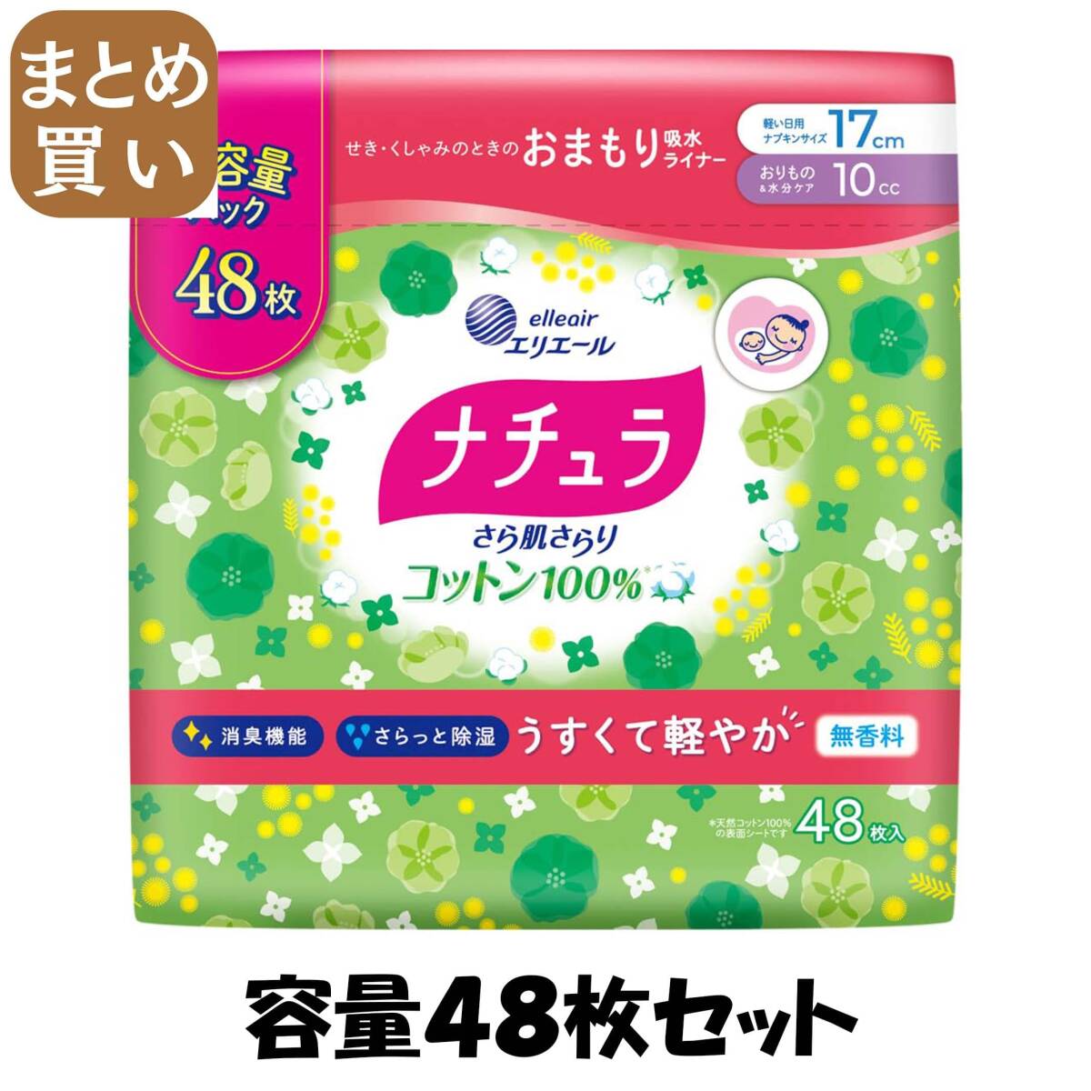 - 【まとめ買い】ナチュラさら肌さらりコットン100%軽やか吸水パンティライナー17cm10cc大容量48枚