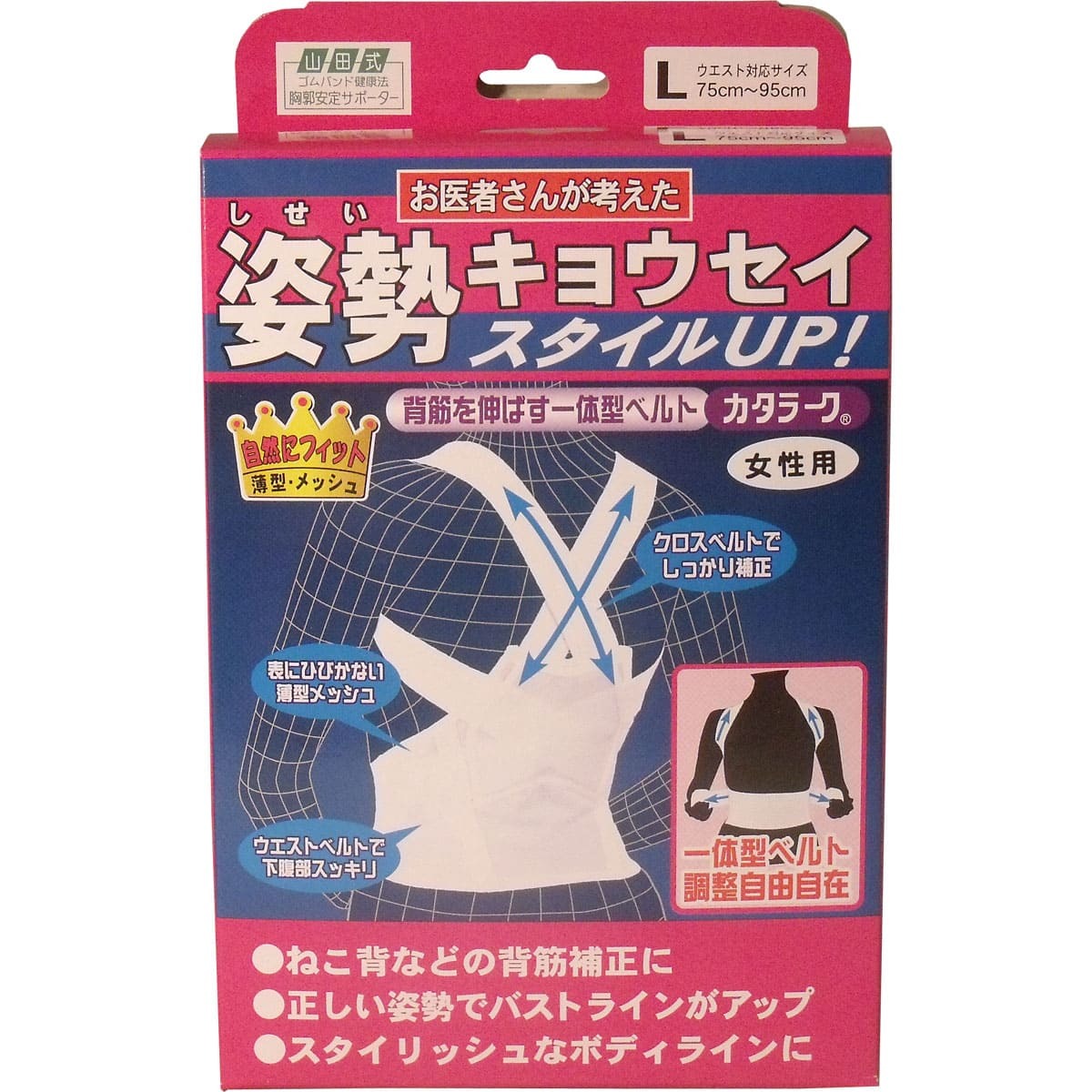 ▼▼▼▼▼▼注意事項▼▼▼▼▼▼・送料込み(送料700円が商品価格に含まれています) 一部地域では追加送料あり。・お取り寄せ商品です。弊社にて手配後、メーカー・卸業者からの直送になります。・まれにメーカー欠品、出荷遅延等が発生致します。問題発生時は別途メールにてご連絡致します。・配送方法の指定、日時指定、置き配、ギフト対応、他商品との同梱配送などは対応できません。・まとめ買いや複数購入の場合は通常より発送に時間が掛かる場合がございます・複数個口の場合、2階以上への搬入ができない場合があります。(その場合は1階での受け渡しとなります)・大型連休、お盆、年末年始などは発送をお休みさせていただく場合がございます・メーカー都合により、パッケージは予告なく変更される場合がございます・梱包用のダンボールはリサイクル品を使用させていただきます。・注文に関するご連絡(注文確定通知・発送通知など)はメールでご案内させていただきます※商品ページの内容について、少しでもご不明な点などがございましたら購入前に一度ご連絡ください▲▲▲▲▲▲注意事項▲▲▲▲▲▲〇商品説明背筋を伸ばす一体型ベルト!調整自由自在!!背筋が伸び正しい姿勢の保持に役立ちます!・クロスべルトでしっかり補正!・表にひびかない薄型メッシュ。・ウエストベルトで下半身スッキリ。・ねこ背などの背筋補正に。・正しい姿勢でバスとラインがアップ。・スタイリッシュなボディラインに。【ウエスト対応サイズ】M:60cm〜75cmL:75cm〜95cm【素材】ナイロン、ポリエステル、ポリウレタン、ゴム【注意】・素肌に直接装着しないでください。・ご使用前に正しい装着方法の説明書を必ずお読みください。〇商品仕様個装サイズ:131X215X54mm個装重量:約200g製造国:日本内容量:1枚入【発売元:株式会社ミノウラ】(出典:ミノウラ)