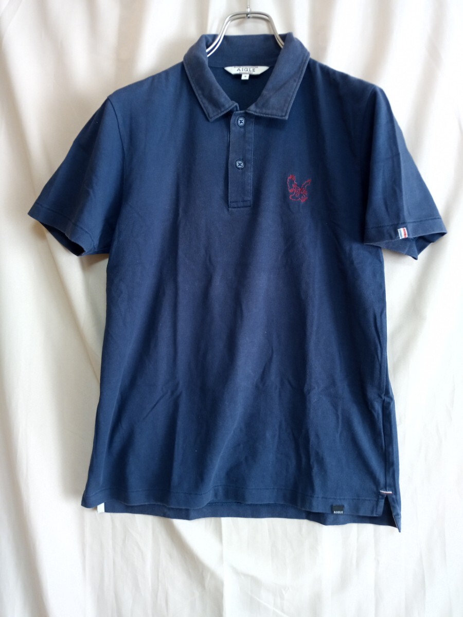 - 13299 ★★ AIGLE ワンポイント刺繍入 半袖ポロシャツ サイズS ネイビー