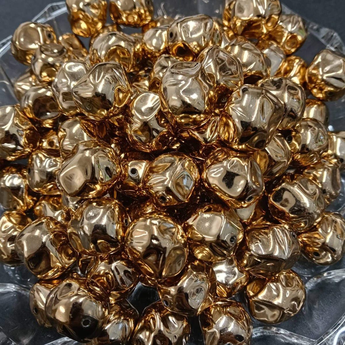 > ☆未使用 大量 シュリンク プラビーズ ラウンド 約298g 17mm ゴールド色 金色 ヴィンテージ 手芸 パーツ アクセサリー ネックレス 15