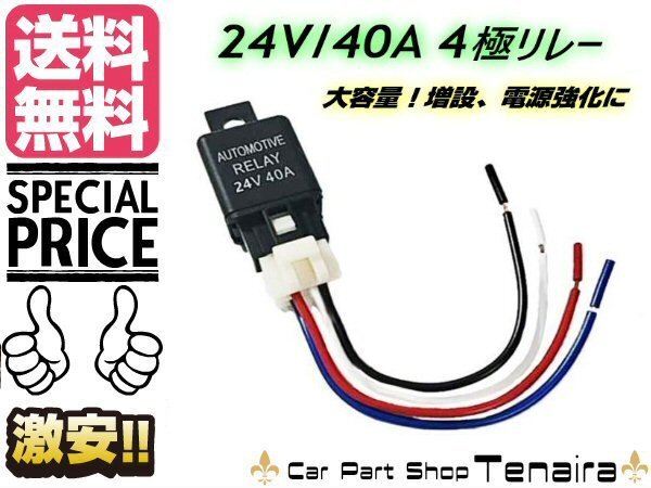 > 24v 4極リレー 40A 4ピン カプラー配線付 LED HID 汎用 自動車 バイク デイライト フォグランプ ホーン 増設 後付 追加 メール便送料無料/7