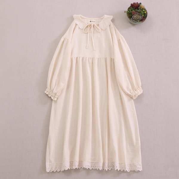 - lb 0708 ワンピース フリーサイズ チュニック トップス ナチュラル 綿100% 大人可愛 ゆったり レース 重ね着用にも 2