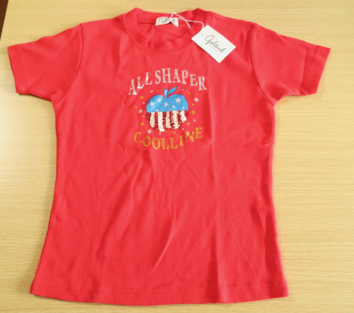 > goland★赤色半袖Tシャツ【TM/160サイズ】林檎のスパンコールデザイン・未使用