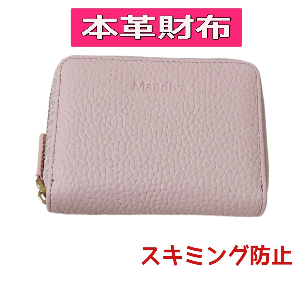- 本革財布 二つ折り ミニウォレット スキミング防止 コンパクト ピンク プレゼント ミニ財布 ギフト お札を折らない カードケース