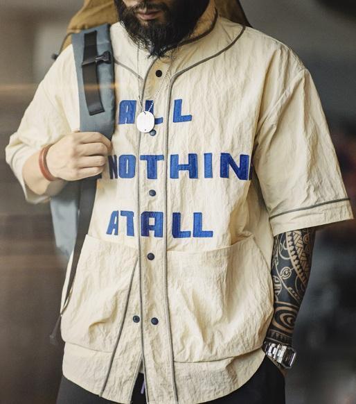 > ベースボールシャツ 野球 半袖 シャツ 白 青 ブルー M アメカジ ストリート ヒップホップ B系 ミックス スポーツ