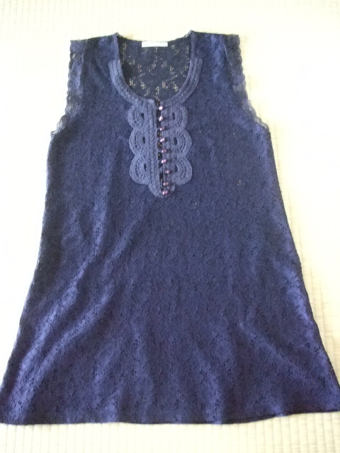 - ELLEPRANETE ノースリーブお花柄レース上品でかわいいチュニック 紺系 S~M
