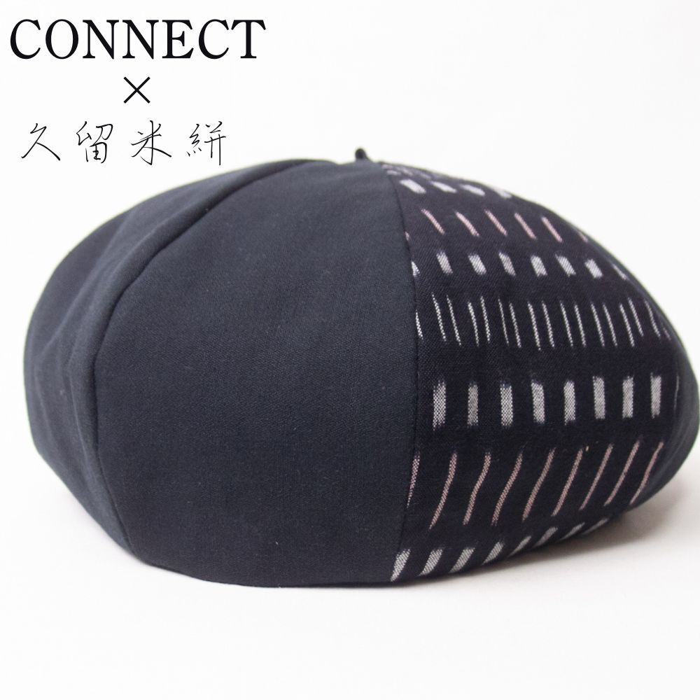 - 新品 CONNECT×久留米絣 コットン ベレー帽 ブラック フリーサイズ