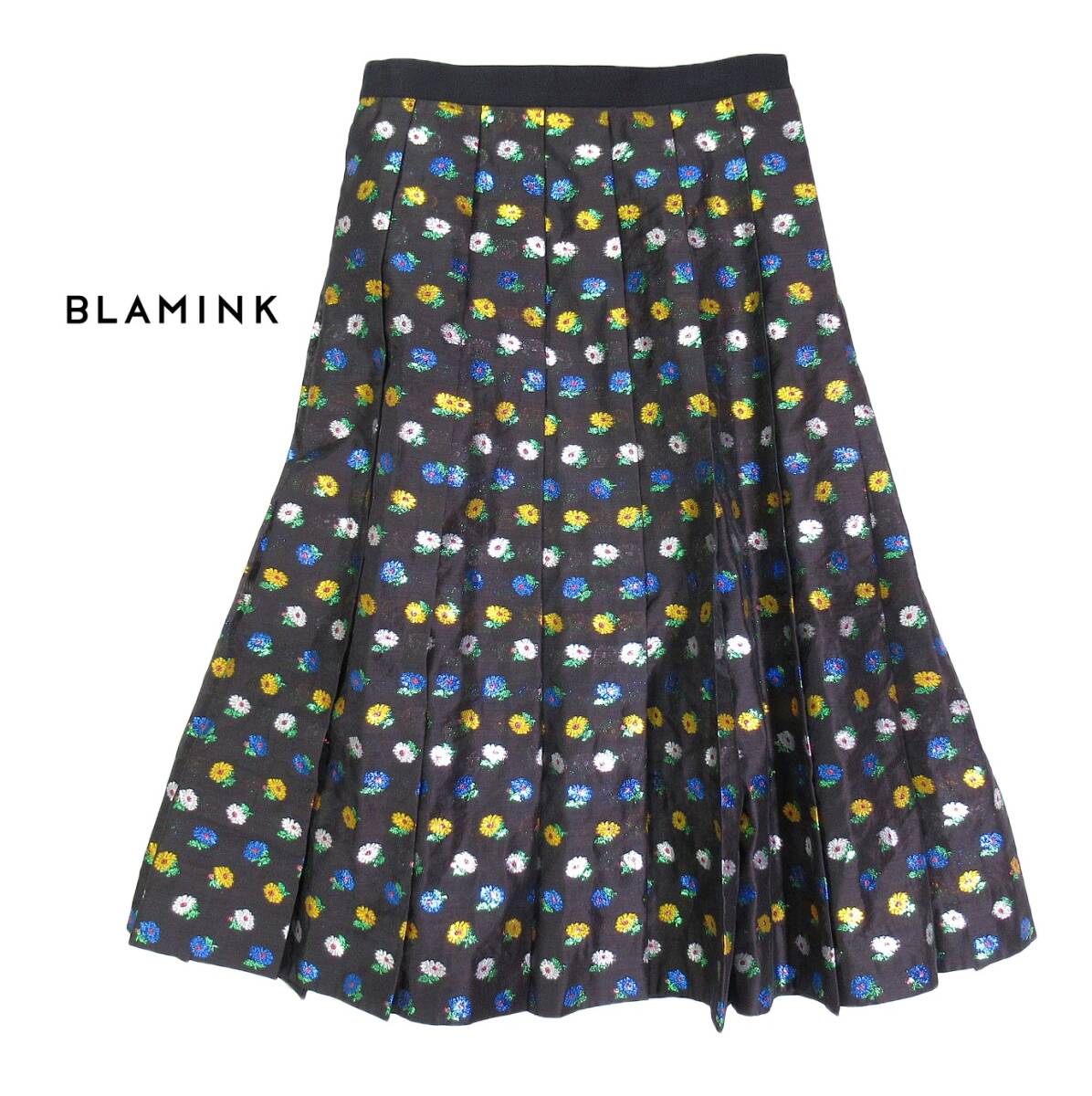 - ブラミンク BLAMINK ラメ フラワー ハンドプリーツ スカート 38