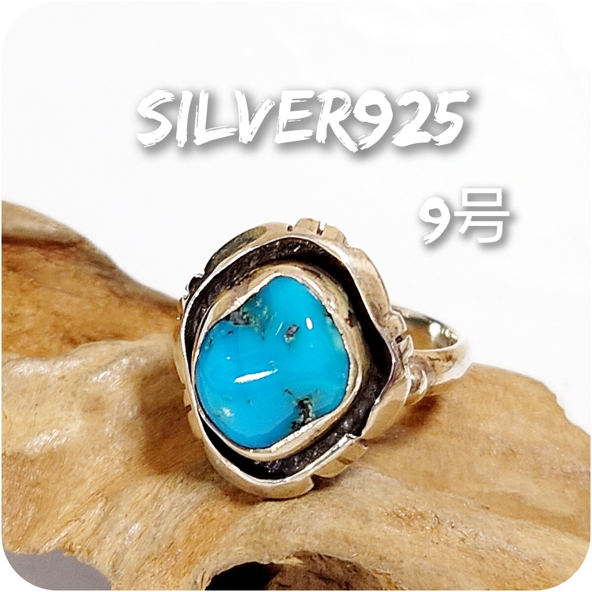 > 6362 SILVER925 アメリカ産 ターコイズリング9号 シルバー925 天然石 パイライト インディアンジュエリー ヴィンテージ ハンドメイド