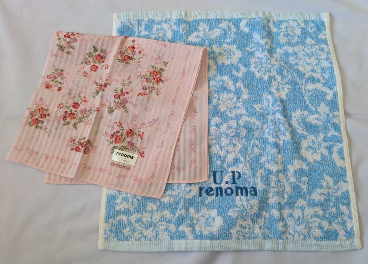 - 送料185円 匿名230円 renomaレノマ ハンカチ&ハンドタオル 2枚セット