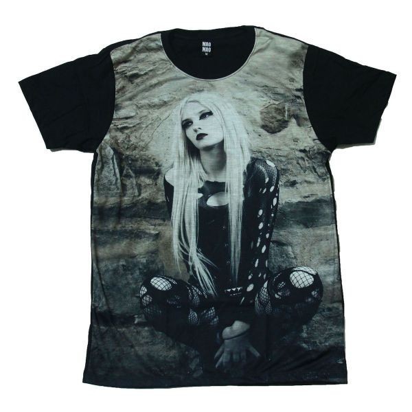 > セクシーガール パンクロック 金髪 網タイツ ストリート系 デザイン おもしろTシャツ メンズ 半袖★tsr0326-blk-l