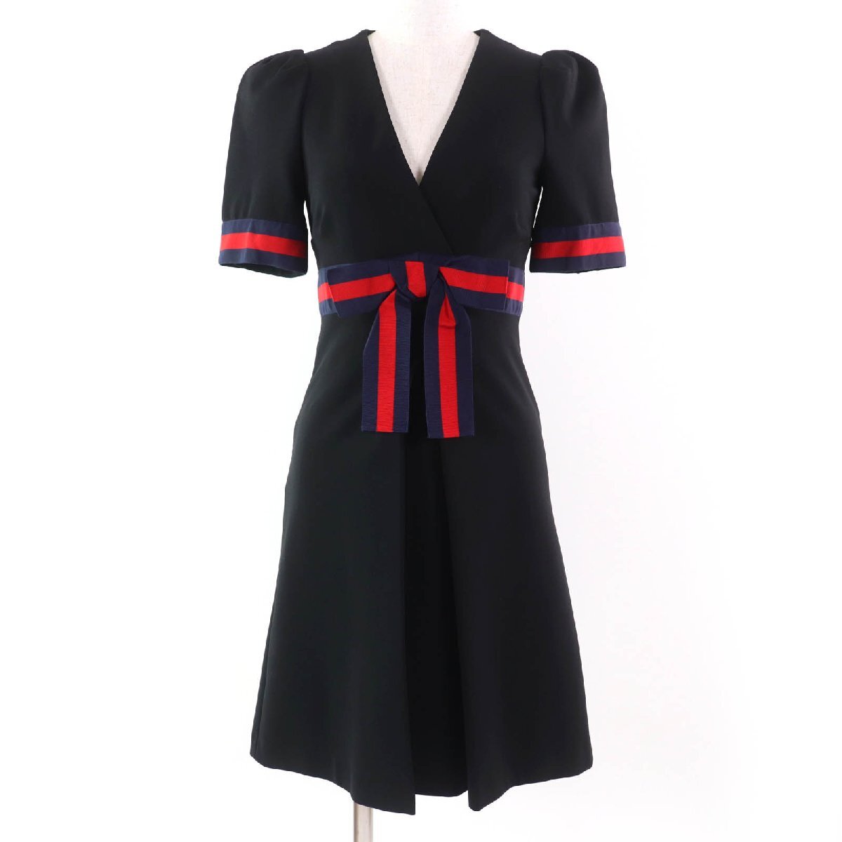 > 極美品☆GUCCI グッチ 501488 Jersey V-neck Dress インターロッキングGパール付 ワンピース ブラック XS イタリア製 正規品 レディース