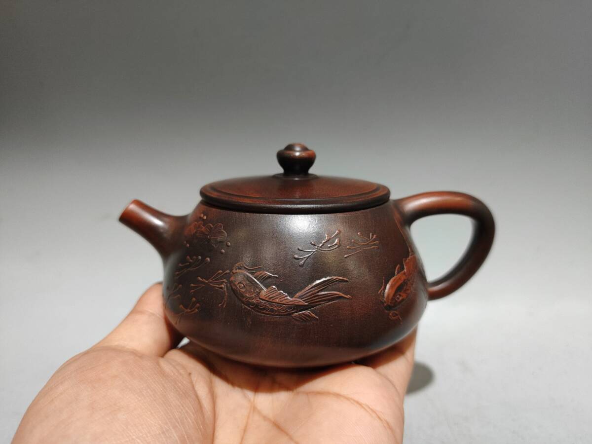 - ▽鴻▽ 紫砂壺 窯變石瓢壺 顧景舟款 紫泥 紫砂壺 茶具 茶道品 酒壺 急須 古賞物 古董品 時代物 稀少珍品 中国古玩 中国古美術