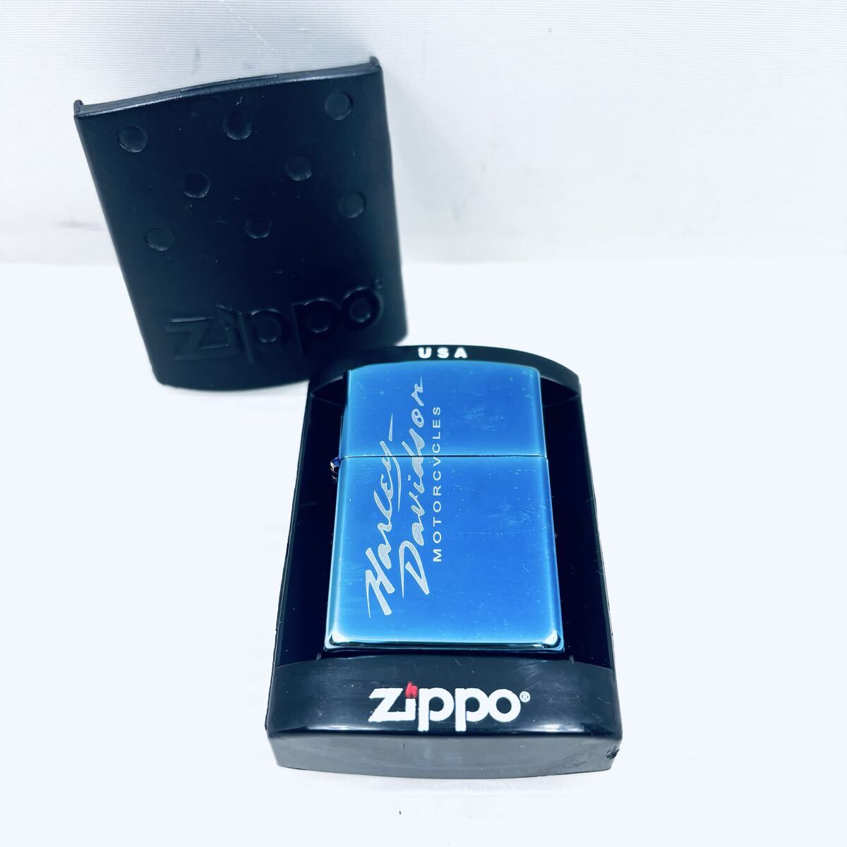 > Zippo ジッポー オイルライター ハーレーダビッドソン ブルー ケース付き