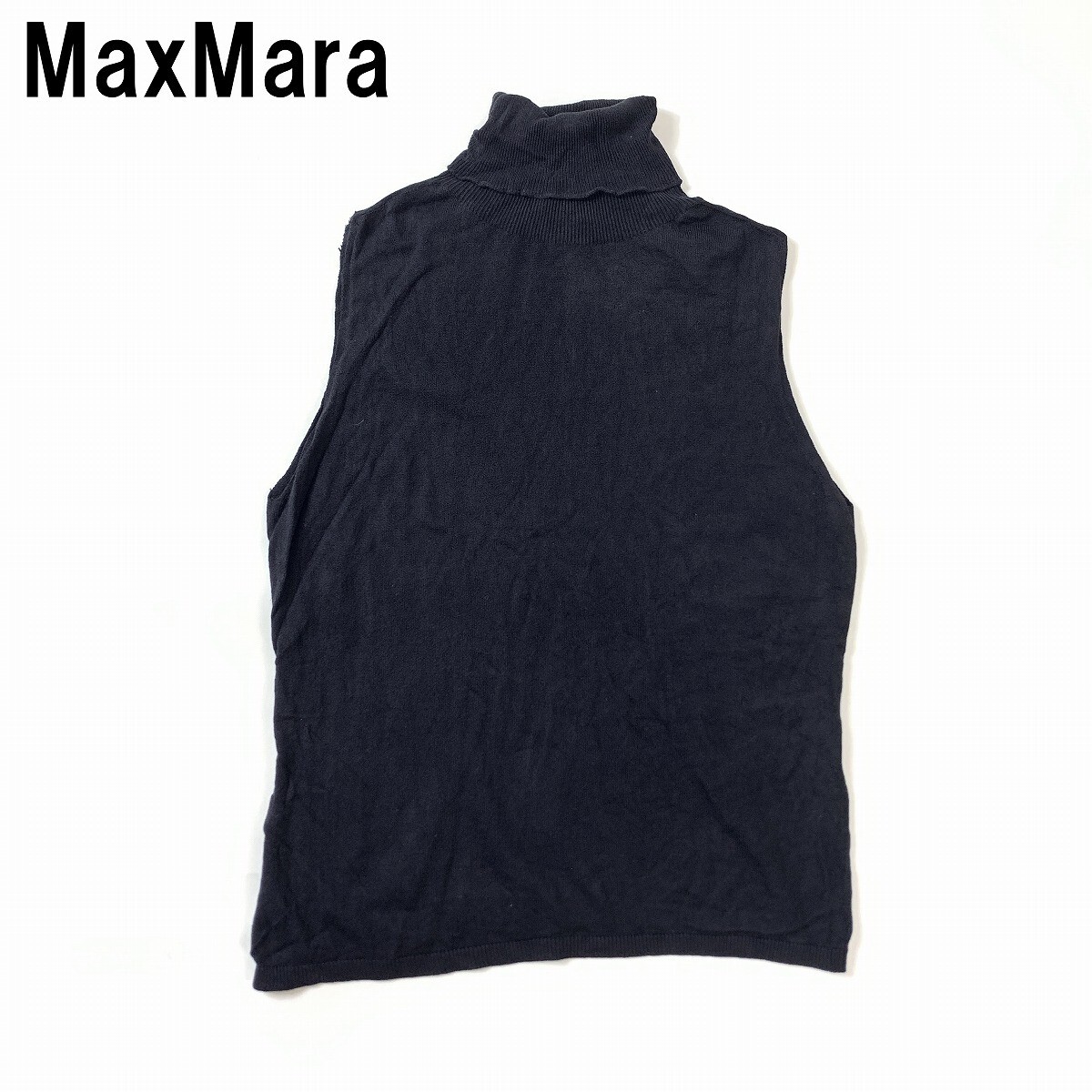 > MaxMara マックスマーラ ノースリーブニット セーター トップス タートルネック 綿 コットン系 黒 ブラック L YC858