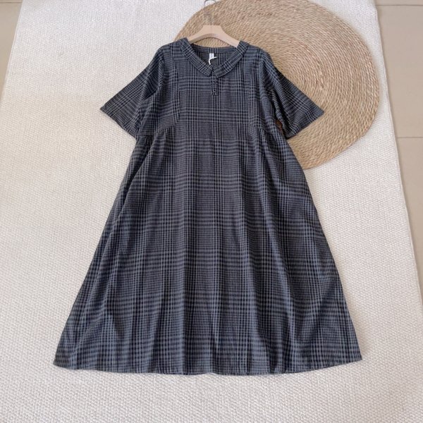 - lh 0708 ワンピース Aライン フリーサイズ チュニック ナチュラル 綿100% 大人可愛 チェック柄 サラサラ 黒灰色