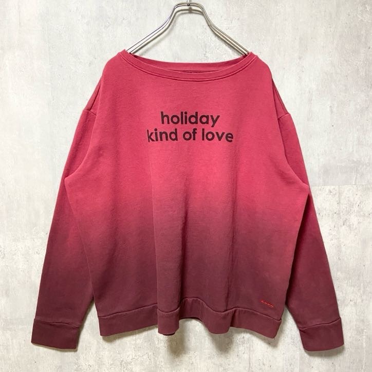 - 古着 used peace love world 長袖グラデーションロゴプリントスウェット トレーナー 赤 レトロ XLサイズ