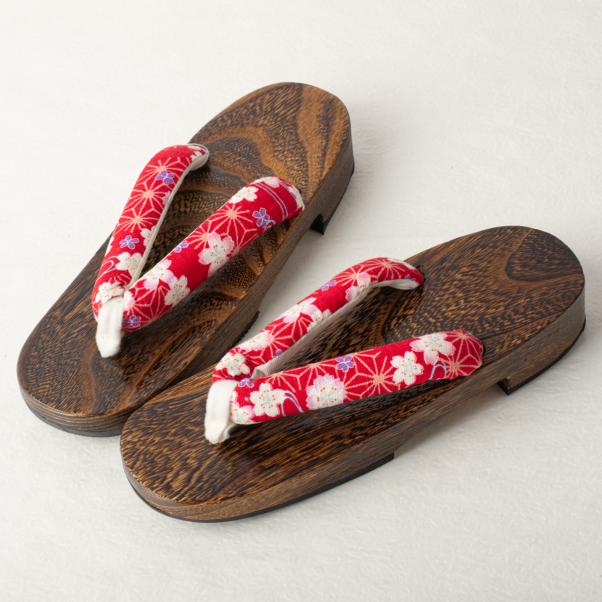 - 焼き桐下駄【焦げ茶台 LLサイズ】3751(小紋柄鼻緒 滑り止め ラバー付)