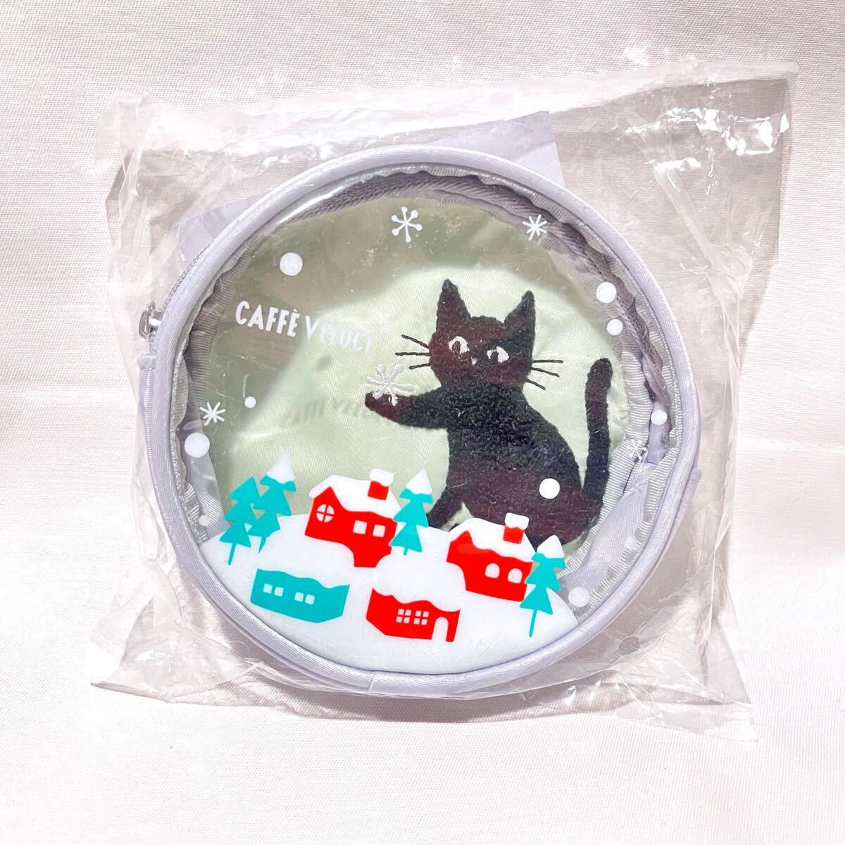 - 【CAFFE VELOCE (カフェ ベローチェ)】スノードームポーチ 黒猫 クリアポーチ 透明ポーチ