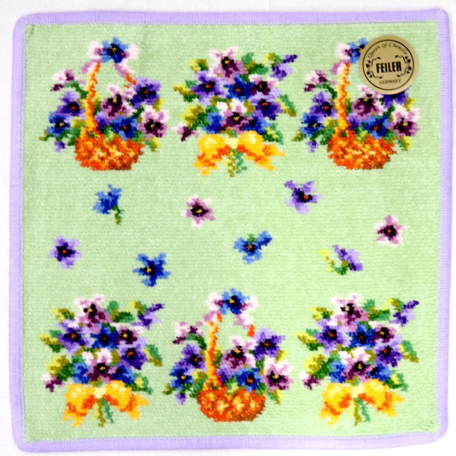 - ★新品★ フェイラーハンカチ 定価2,750円 アメイジングバイオレット 25cm×25cm ペールグリーン
