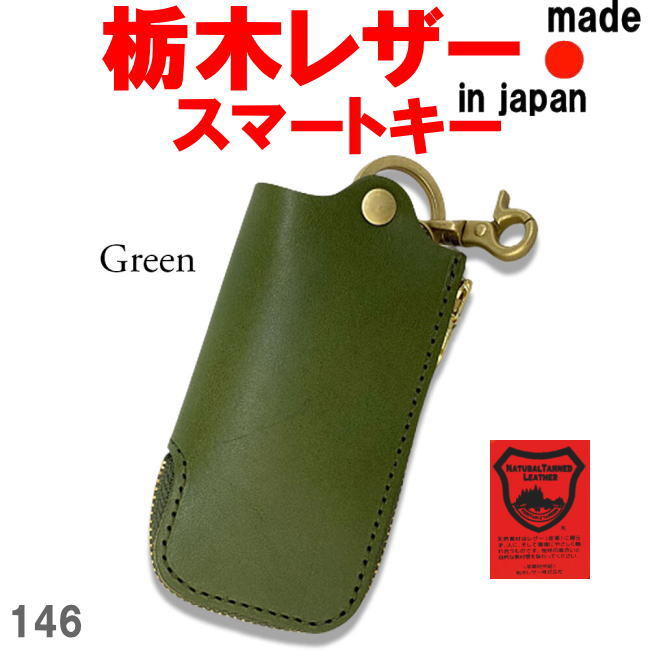 - カーキ 栃木レザー 146 Lジップ スマート キーケース 日本製 本革 メンズ レディース
