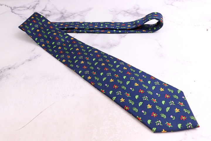 > サルヴァトーレフェラガモ ブランド ネクタイ シルク ボタニカル柄 花柄 総柄 PO メンズ ネイビー Salvatore Ferragamo