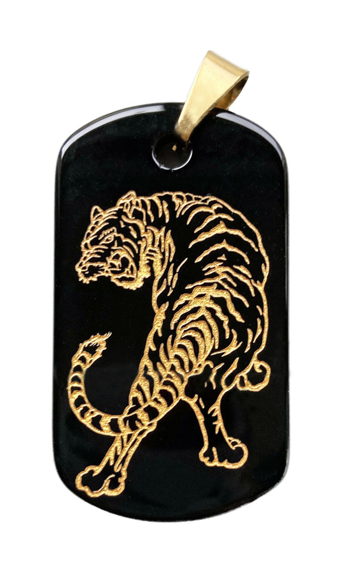 - SV925 オニキスプレート「黄金虎」ペンダント(チェーン:50cm)