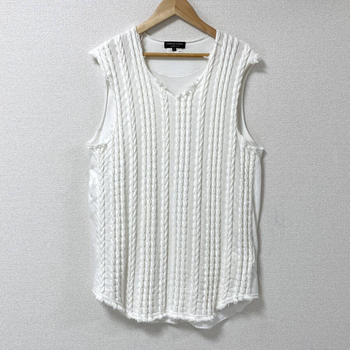 > AD2011 コムデギャルソンオムプリュス ケーブルニット ドッキング ノースリーブ カットソー 白 HOMME PLUS ベスト archive 5070311