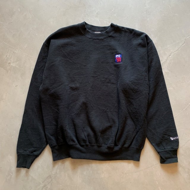 > 【XL】メキシコ製 90s ワンポイント刺繍 スウェット ブラック 黒■ビンテージ アメリカ古着 ビッグサイズ トレーナー ハイコットン
