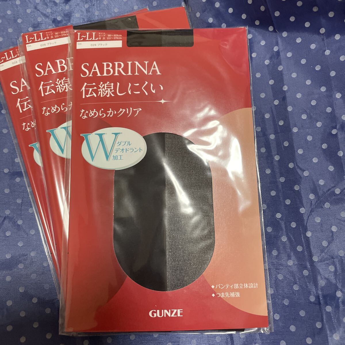 - 送料無料 新品 グンゼ GUNZE サブリナ SABRINA 伝線しにくいパンティストッキング3足セット ブラック黒 L-LL Wデオドラント加工 送料込み