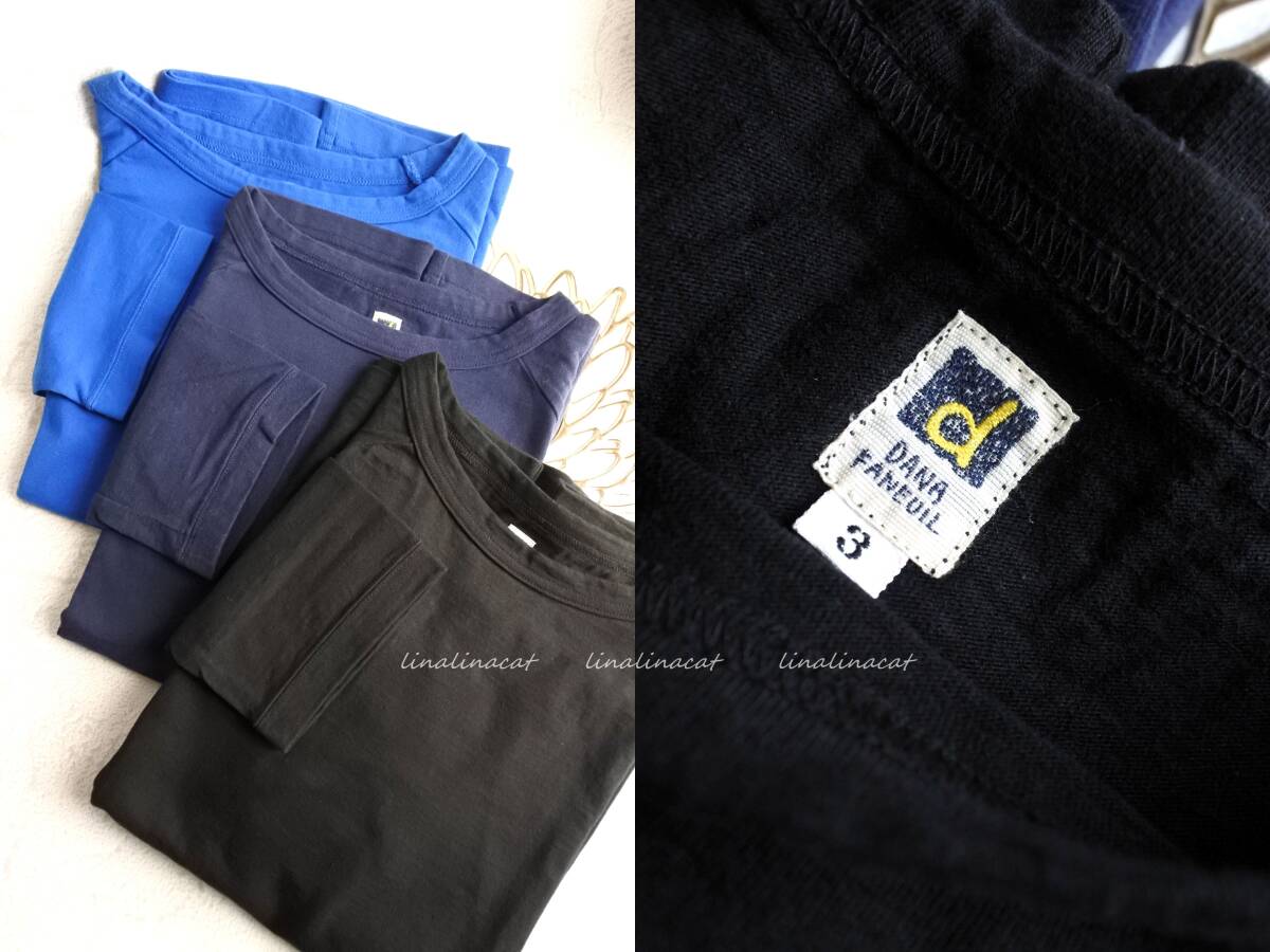 > 未使用含む美品です 日本製 ダナファヌル*3(L)×3枚セット 七分袖② ボートネック ラグランプルオーバー 黒、ブルー、ネイビー