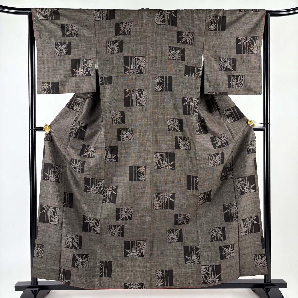 - 大島紬 身丈160cm 裄丈64cm M 袷 純泥染 色紙 葉 焦茶色 正絹 名品 【中古】