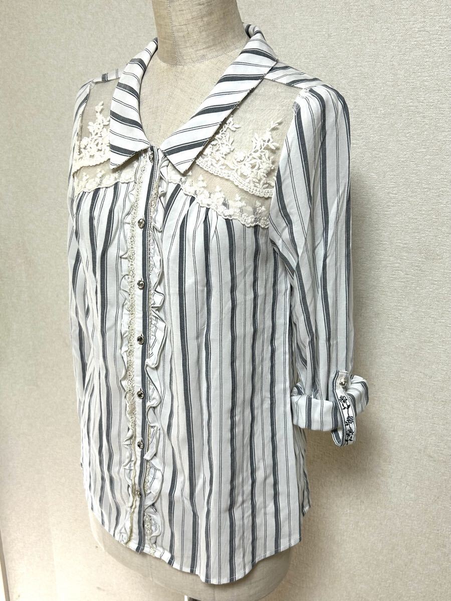 - 【 axes femme ★アクシーズファム】長袖ブラウス・シースルーレース切り替え・Mサイズ・送料180円