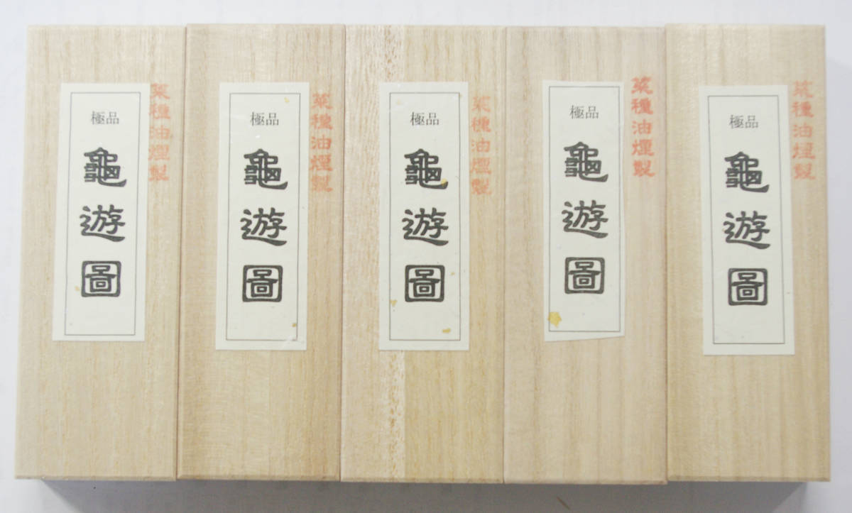 - 書道 墨 固型墨 3丁型 金巻 「極品 亀遊図」菜種油煙製 書道用墨 まとめて 美術工芸品 固形墨
