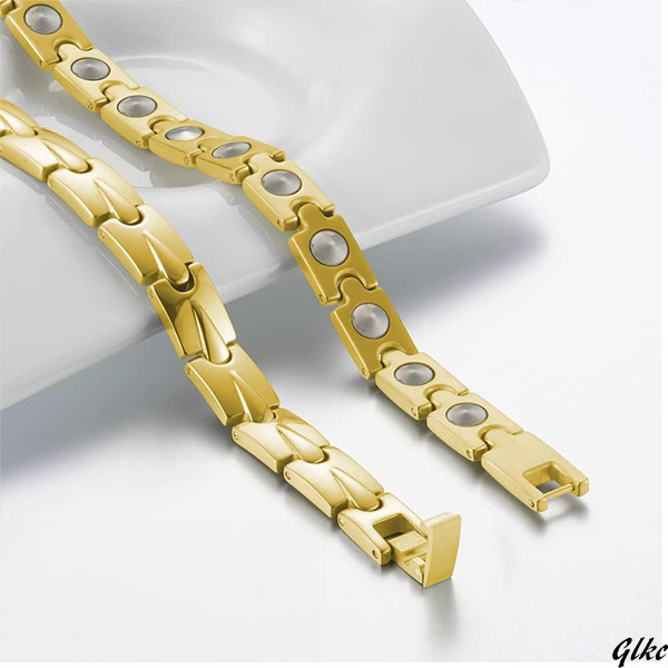> 【純チタン製のゲルマニウム健康ネックレス】 静電気除去アクセサリー 金属アレルギー対応 男女兼用 軽量 ギフトボックス付き ゴールド