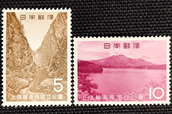 - [25080601]【第2次国立公園 上信越高原】単片2種「清津峡・野尻湖と妙高山」5円+10円 1965年発行 美品 第二次国立公園*